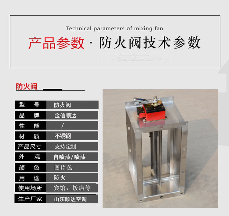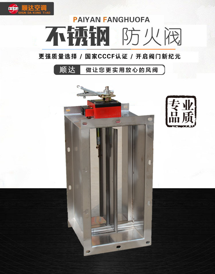 排煙防火閥是一種消防部件,一般安裝在機械排煙系統(tǒng)的管道上,平時呈開啟狀態(tài),發(fā)生火災時開啟排煙,當排煙管道內煙氣溫度達到280度時關閉,并在一定時間內滿足漏煙量和耐火完整性要求,起隔煙阻火作用。主要材質:碳素鋼、鍍鋅板、不銹鋼。