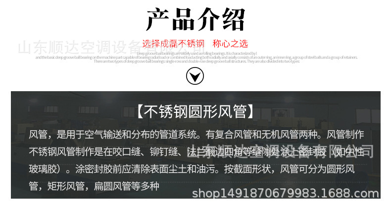 不銹鋼風(fēng)管,不銹鋼風(fēng)管可分為圓形和矩形兩種??筛鶕?jù)工程現(xiàn)場的不同要求,生產(chǎn)各種形狀、各種規(guī)格型號及板材的成品風(fēng)管。不銹鋼風(fēng)管主要材質(zhì)有:SUS304、316、303、310、310S、301、302、304L、316L 、321、201、202、902、904、317、430等。不銹鋼風(fēng)管表面性質(zhì)主要有8K鏡面板、彩色不銹鋼板、不銹鋼磨砂板、不銹鋼拉絲板、不銹鋼花紋板、不銹鋼蝕刻板、鈦金、雪花砂、2B板、BA板和工業(yè) [1] 中厚板。不銹鋼風(fēng)管成品因其優(yōu)異的耐蝕性、耐熱性、高強(qiáng)度等物化性能,主要應(yīng)用于多種氣密性要求較高的工藝排氣系統(tǒng)、溶劑排氣系統(tǒng)、有機(jī)排氣系統(tǒng)、廢氣排氣系統(tǒng)及普通排氣系統(tǒng)室外部分、濕熱排氣系統(tǒng)、排煙除塵系統(tǒng)等。