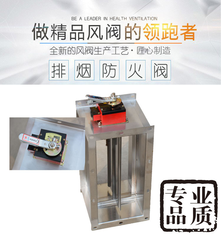 排煙防火閥是一種消防部件,一般安裝在機械排煙系統(tǒng)的管道上,平時呈開啟狀態(tài),發(fā)生火災時開啟排煙,當排煙管道內煙氣溫度達到280度時關閉,并在一定時間內滿足漏煙量和耐火完整性要求,起隔煙阻火作用。主要材質:碳素鋼、鍍鋅板、不銹鋼。